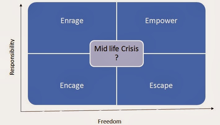 There is a box in the middle termed ‘Mid life Crisis’ and sometimes I have felt that I am in perpetual ‘Mid life Crisis’. I have to admit that till certain stage in life, I was not aware of these two variables. In my view ‘Mid life Crisis’ sets in when I am hopelessly confused about the relative positions of these two variables in my respective spheres of life. But the question I have repeatedly asked myself is, even after I became aware of these variables and their relative positions, did I exercise the choice to move along the axis to become truly liberated?